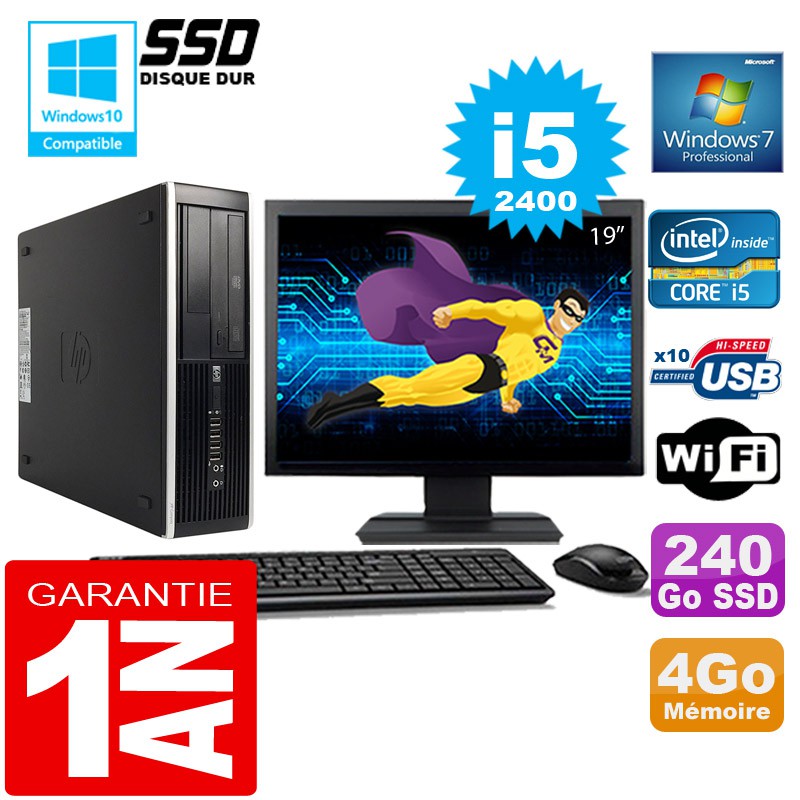 PC HP Compaq 8300 SFF Core I5-2400 Ram 4Go Disque 240 Go SSD Wifi W7 Ecran 19"