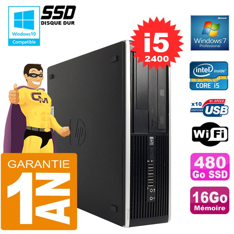PC HP Compaq Elite 8300 SFF - Intel® Core I5-2400 3,1Ghz (6 Mo de cache) - 16 Go DDR3 - Disque Dur 480 Go SSD - Graveur DVD - Clé WIFI USB - Windows 7 Pro - Garantie = 1 an.