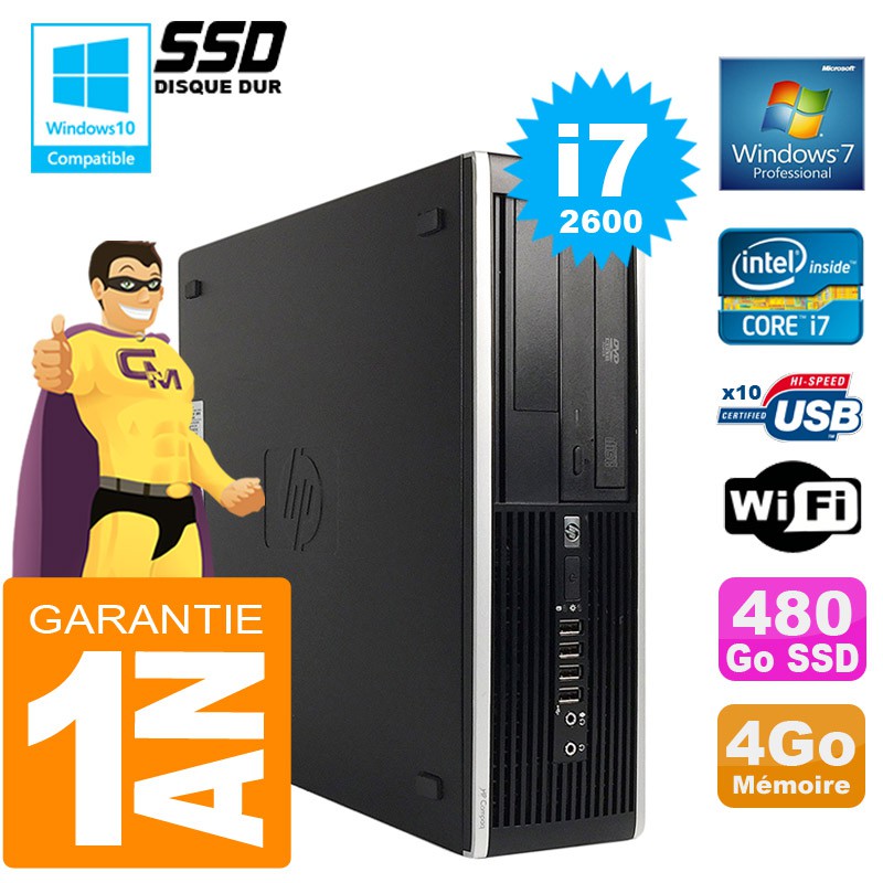 PC HP Compaq Elite 8300 SFF - Intel® Core I7-2600 3,4Ghz (8 Mo de cache) - 4 Go DDR3 - Disque Dur 480 Go SSD - Graveur DVD - Clé WIFI USB - Windows 7 Pro - Garantie = 1 an.