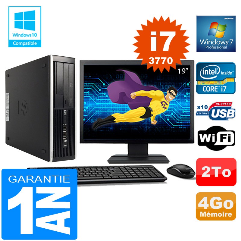 PC HP Compaq 8300 SFF Core I7-3770 Ram 4Go Disque 2 To Wifi W7 Ecran 19"