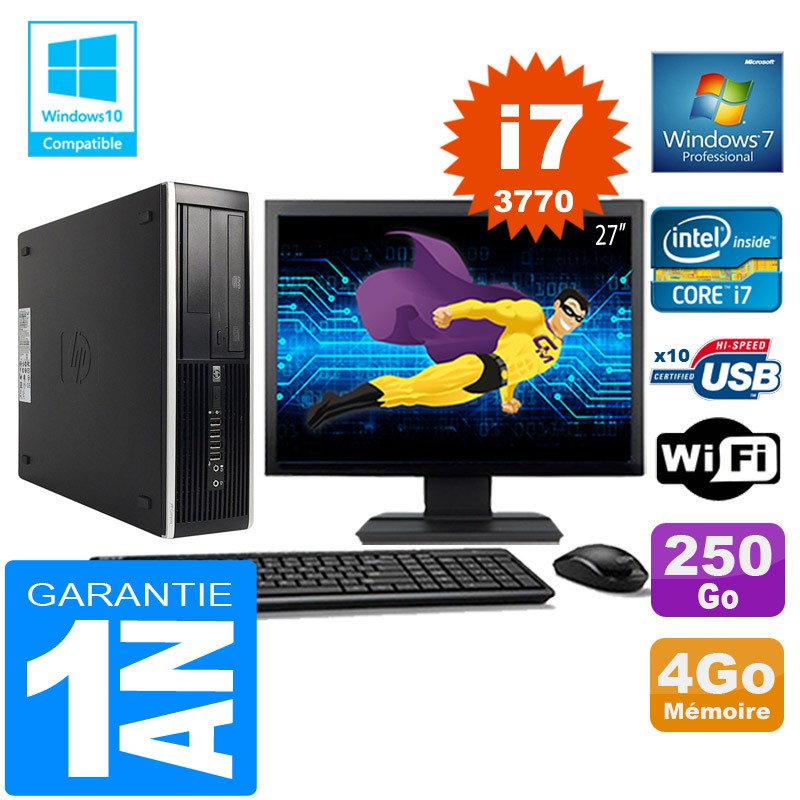 PC HP Compaq 8300 SFF Core I7-3770 Ram 4Go Disque 250 Go Wifi W7 Ecran 27"