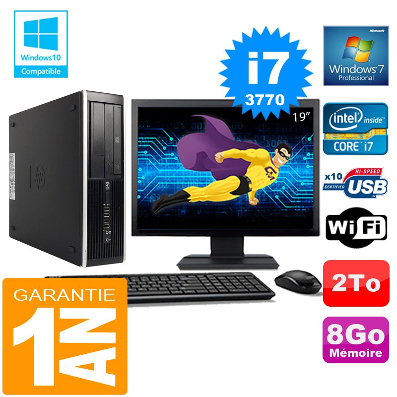 PC HP Compaq 8300 SFF Core I7-3770 Ram 8Go Disque 2 To Wifi W7 Ecran 19"