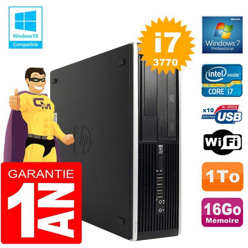 PC HP Compaq 8300 SFF Core I7-3770 Ram 16Go Disque 1 To Graveur DVD Wifi W7