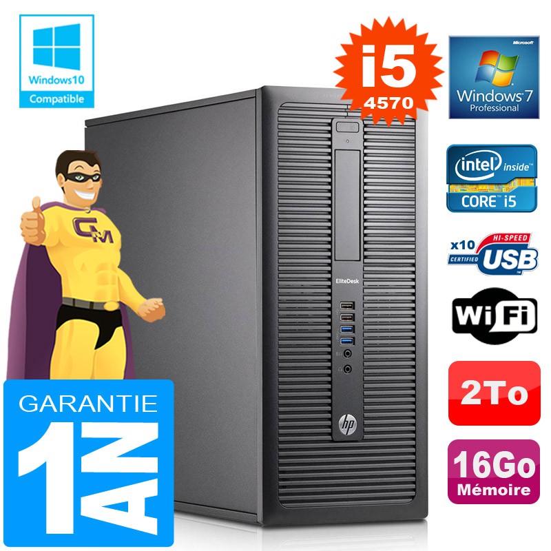 PC Tour HP EliteDesk 800 G1 - Intel® Core™ I5 4570 3.2 GHz - 4 Coeurs - RAM 16Go DDR3 - Disque dur 2To SATA - Graveur DVD - Clé WIFI USB - Windows 7 Pro - Garantie = 12 mois