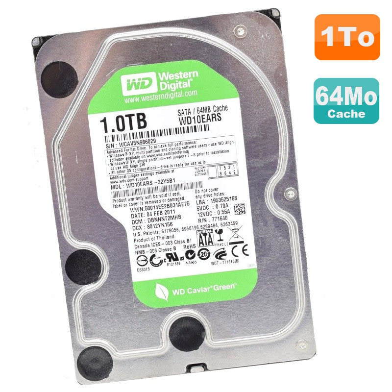 Disque Dur 1To Western Digital WD10EARS-22Y5B1 3.5" SATA Caviar Green 5400 64Mo