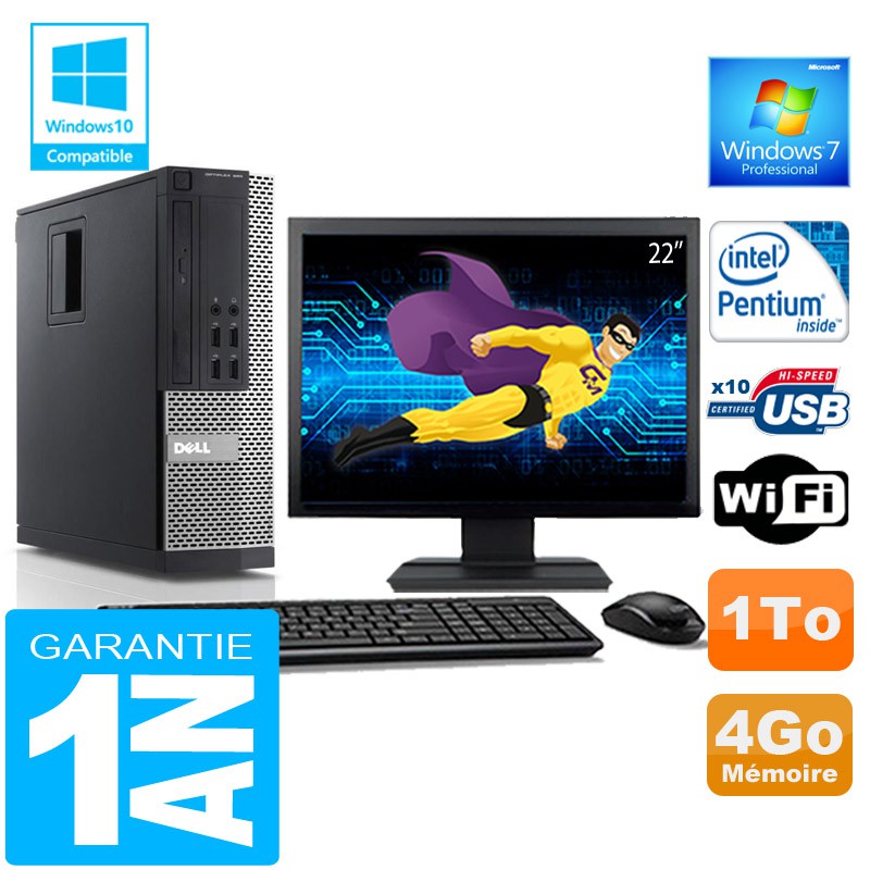 PC DELL 990 SFF Intel G840 Ram 4Go Disque 1 To Wifi W7 Ecran 22"