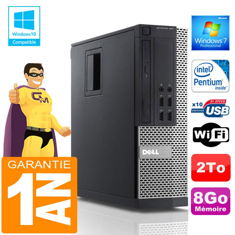PC DELL 990 SFF - Intel®Pentium® G840 2,8Ghz (3 Mo de cache) - 8 Go DDR3 - Disque Dur 2 To - Graveur DVD - Clé WIFI USB - Windows 7 Pro - Garantie = 1 an.