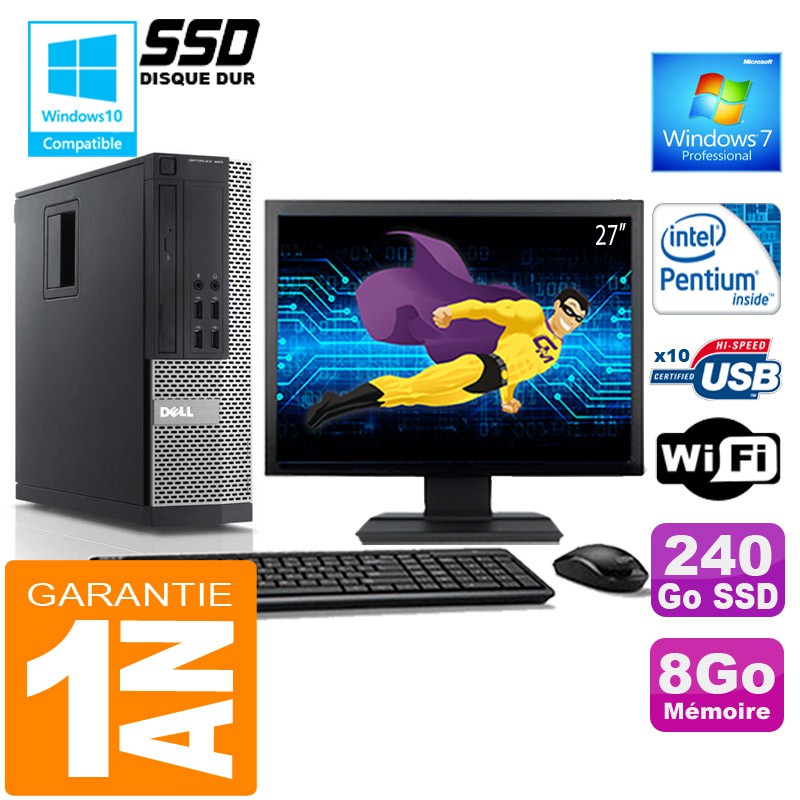 PC DELL 990 SFF Intel G840 Ram 8Go Disque 240 Go SSD Wifi W7 Ecran 27"