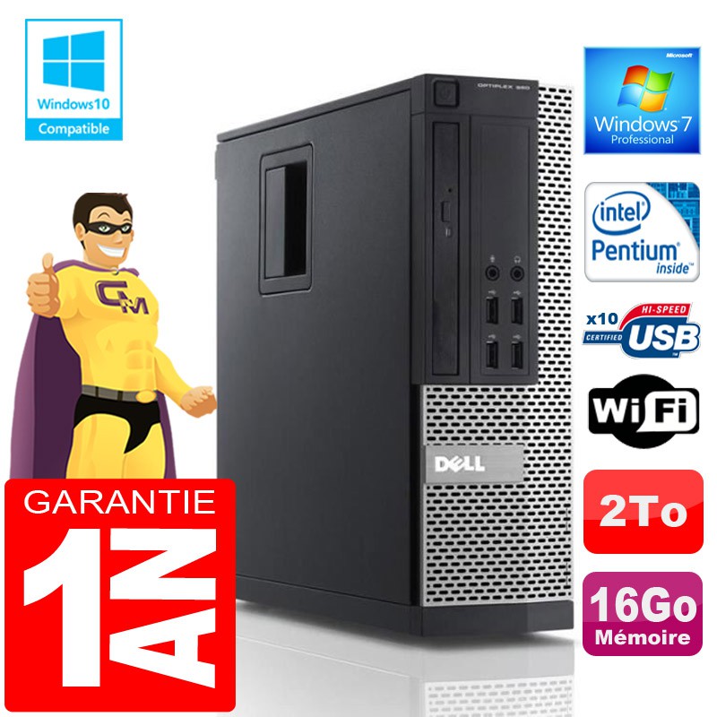 PC DELL 990 SFF Intel G840 Ram 16Go Disque 2 To Wifi W7