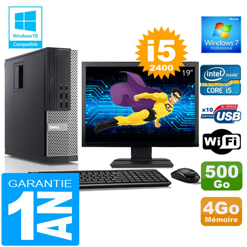 PC DELL 990 SFF Core I5-2400 Ram 4Go Disque 500 Go Wifi W7 Ecran 19"