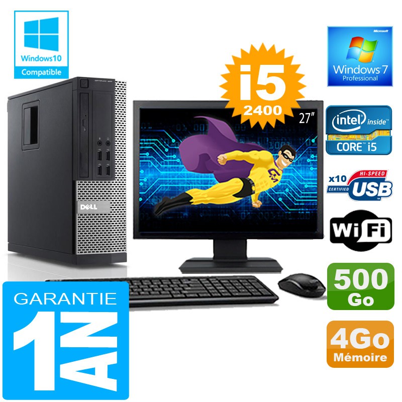 PC DELL 990 SFF Core I5-2400 Ram 4Go Disque 500 Go Wifi W7 Ecran 27"