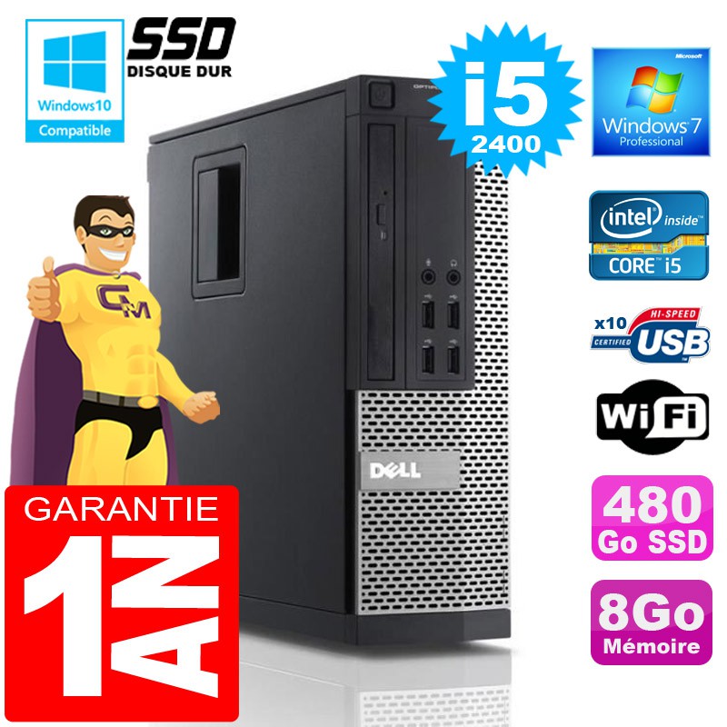 PC DELL 990 SFF - Intel® Core I5-2400 3,1Ghz (6 Mo de cache) - 8Go DDR3 - Disque Dur 480 Go SSD - Graveur DVD - Clé WIFI USB - Windows 7 Pro - Garantie = 1 an.