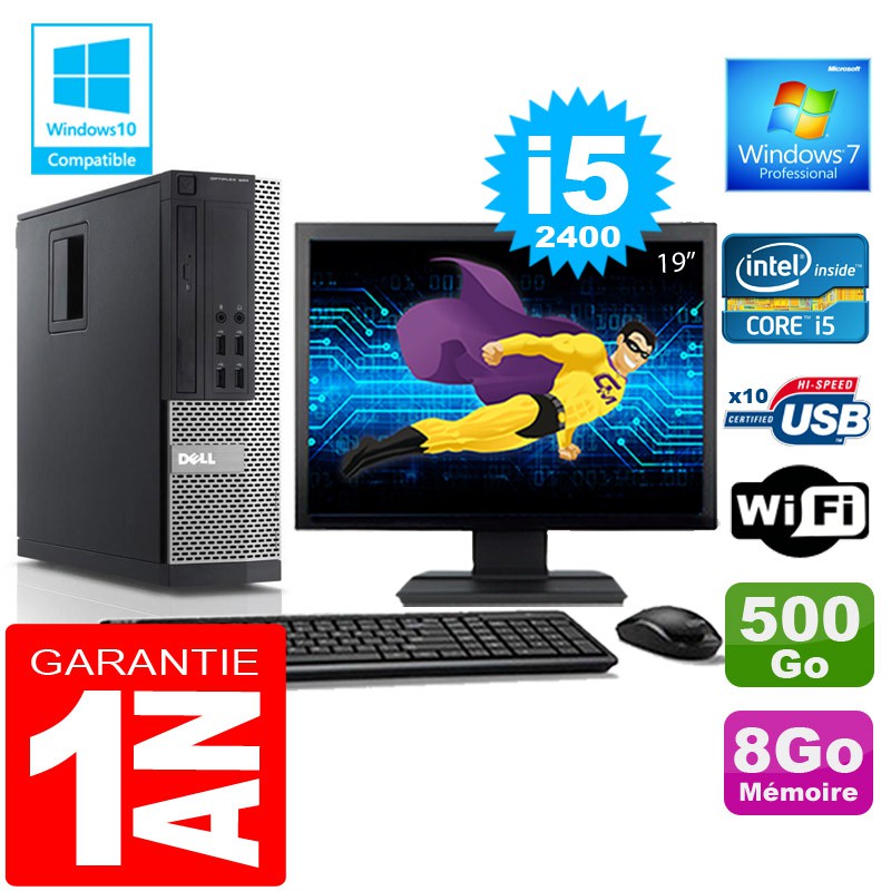 PC DELL 990 SFF Core I5-2400 Ram 8Go Disque 500 Go Wifi W7 Ecran 19"