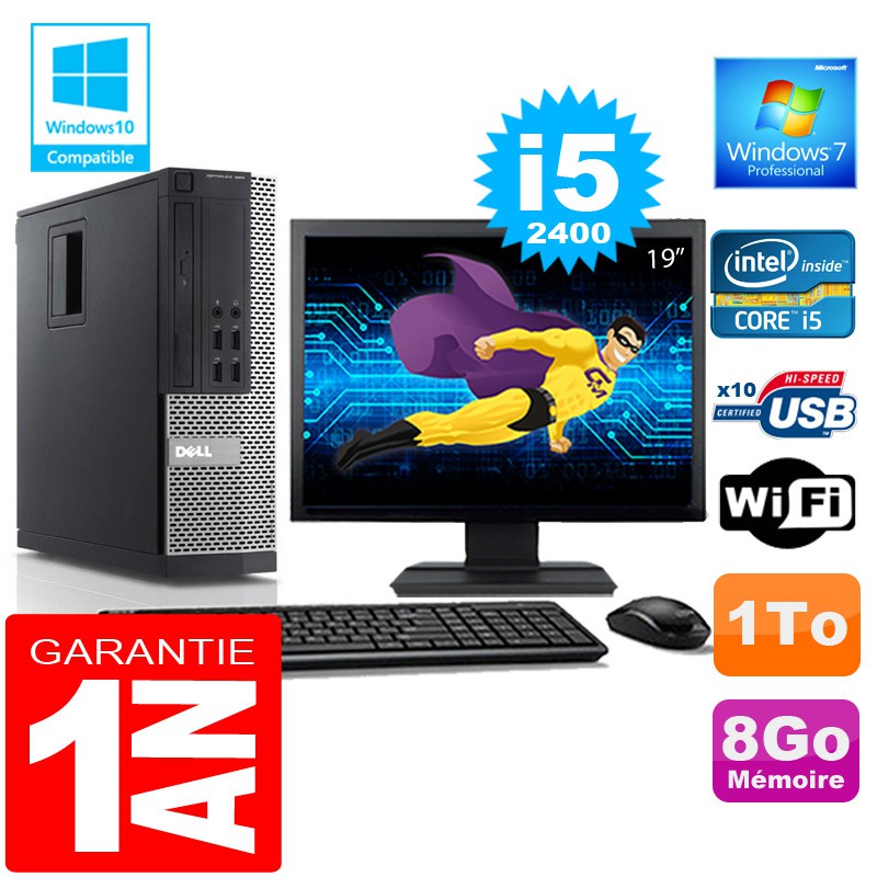 PC DELL 990 SFF Core I5-2400 Ram 8Go Disque 1 To Wifi W7 Ecran 19"