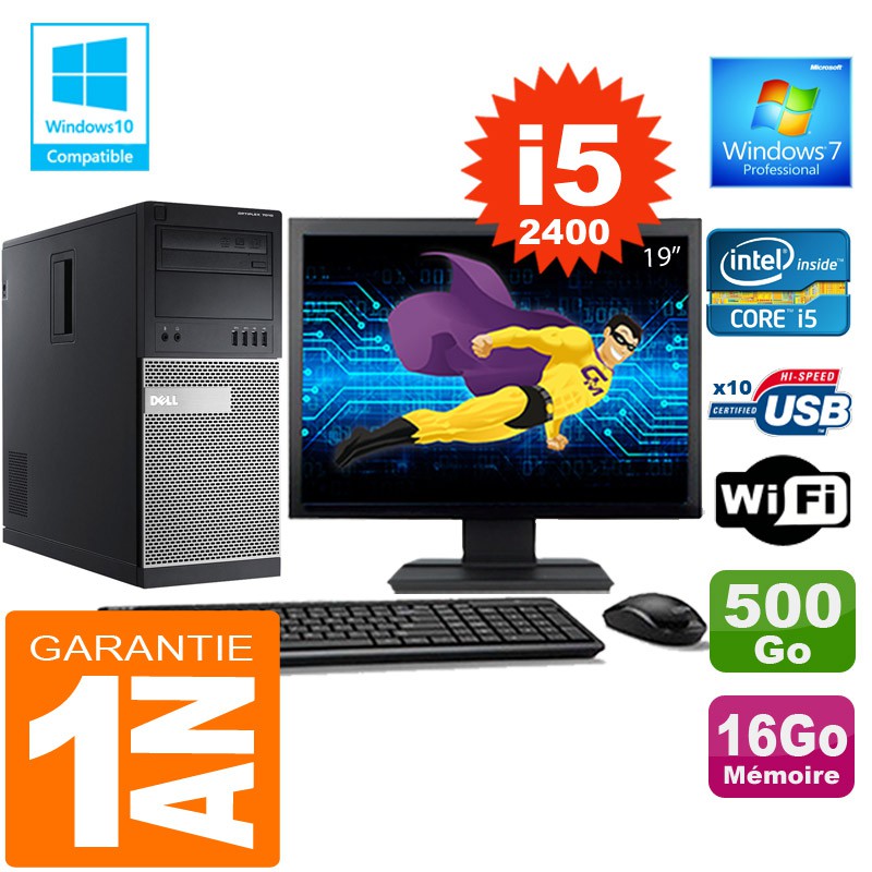 PC Tour DELL 7010 Core I5-2400 Ram 16Go Disque 500 Go Wifi W7 Ecran 19"