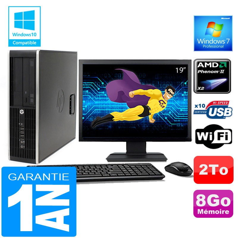 PC HP Compaq 6005 Pro SFF AMD Phenom II Ram 8Go Disque 2 To Wifi W7 Ecran 19"