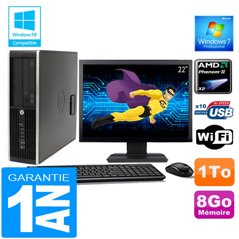 PC HP Compaq 6005 Pro SFF AMD Phenom II Ram 8Go Disque 1 To Wifi W7 Ecran 22"