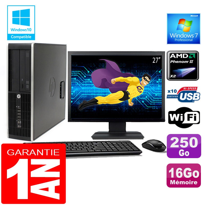 PC HP Compaq 6005 Pro SFF AMD Phenom II Ram 16Go Disque 250 Go Wifi W7 Ecran 27"