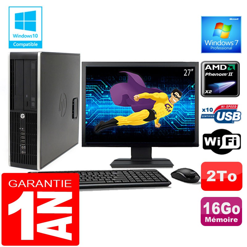 PC HP Compaq 6005 Pro SFF AMD Phenom II Ram 16Go Disque 2 To Wifi W7 Ecran 27"