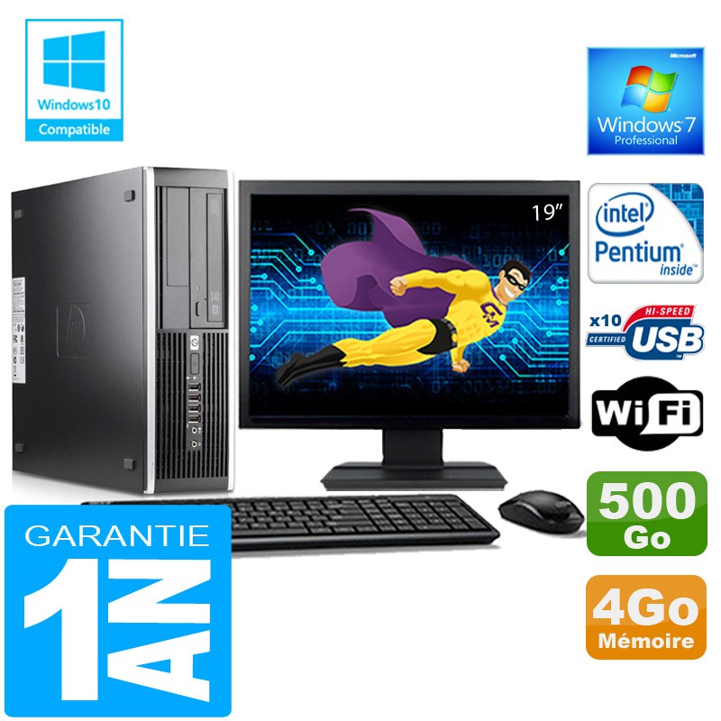 PC HP Compaq 6000 Pro SFF Intel E6300 Ram 4Go Disque 500 Go Wifi W7 Ecran 19"