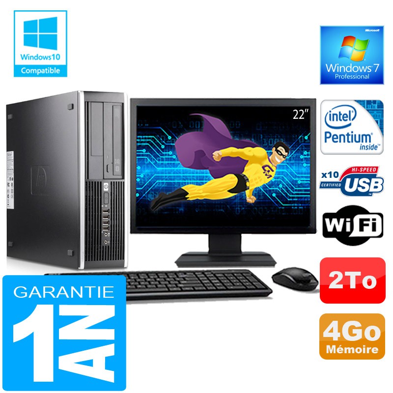 PC HP Compaq 6000 Pro SFF Intel E6300 Ram 4Go Disque 2 To Wifi W7 Ecran 22"