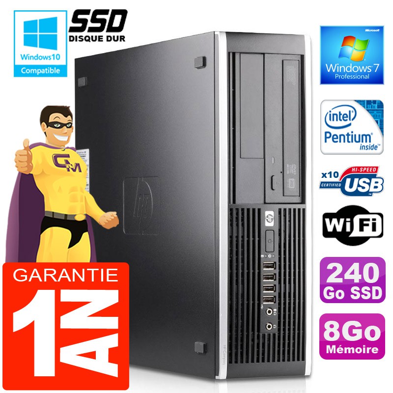 PC HP Compaq 6000 Pro SFF Intel E6300 Ram 8Go Disque 240Go SSD Graveur Wifi W7
