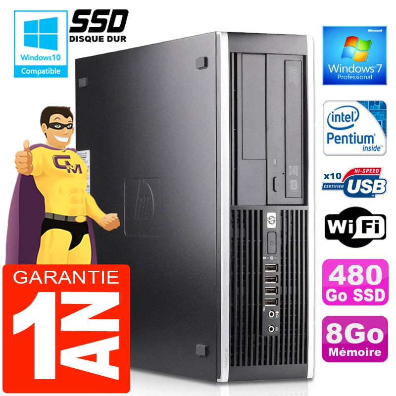 PC HP Compaq 6000 Pro SFF Intel E6300 Ram 8Go Disque 480Go SSD Graveur Wifi W7