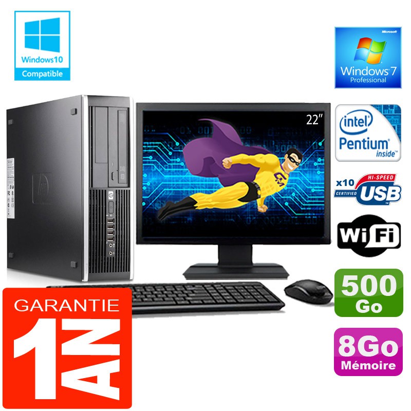 PC HP Compaq 6000 Pro SFF Intel E6300 Ram 8Go Disque 500 Go Wifi W7 Ecran 22"