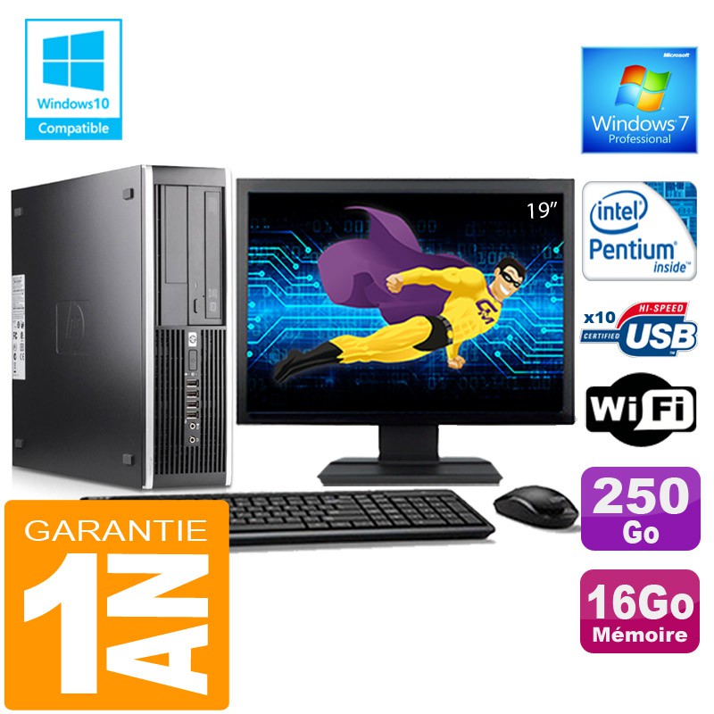PC HP Compaq 6000 Pro SFF Intel E6300 Ram 16Go Disque 250 Go Wifi W7 Ecran 19"