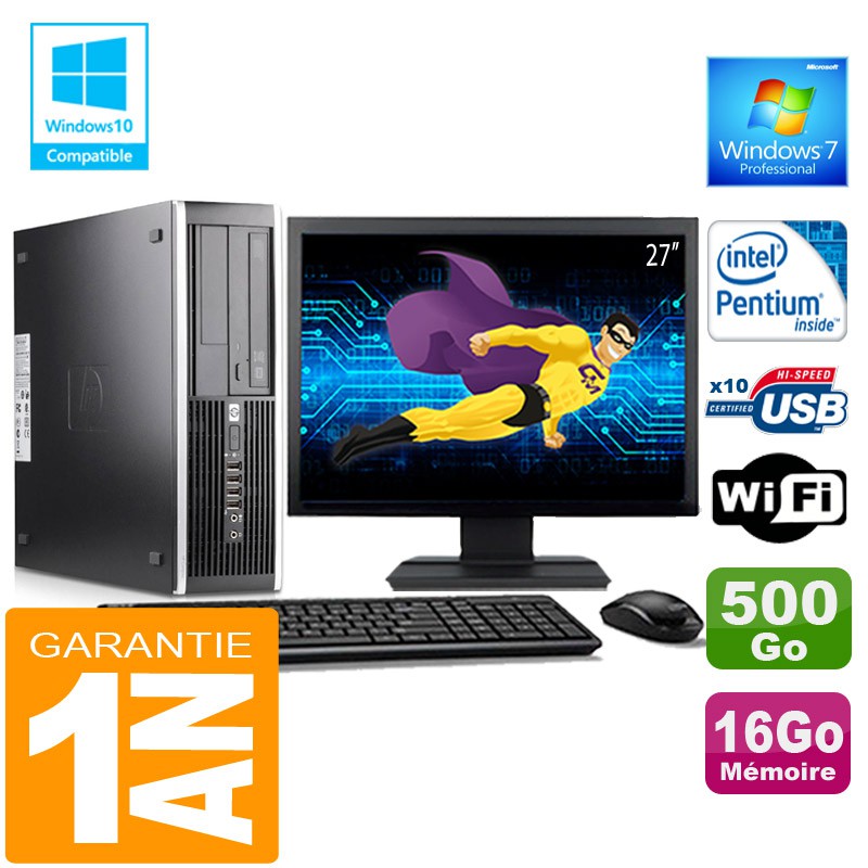 PC HP Compaq 6000 Pro SFF Intel E6300 Ram 16Go Disque 500 Go Wifi W7 Ecran 27"