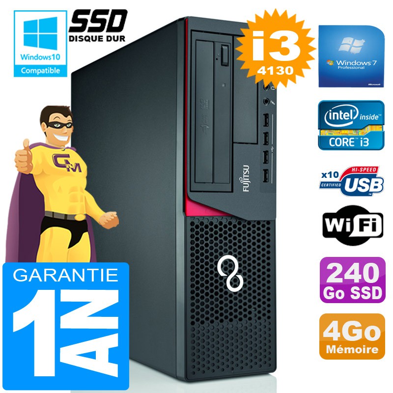 PC Fujitsu Esprimo P400 - Intel Core I3-4130 3,4Ghz (3 Mo de cache) - 4Go DDR3 - Disque Dur 240 Go SSD - Graveur DVD - Clé WIFI USB - Windows 7 Pro - Garantie = 1 an.