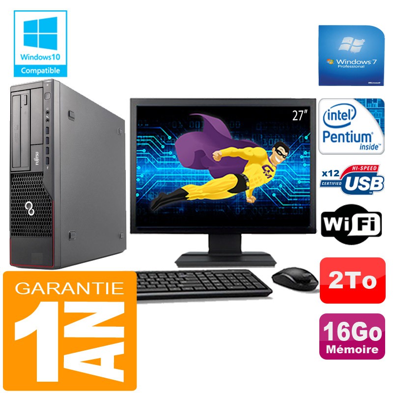 PC Fujitsu Esprimo E700 E90+ SFF Intel G840 16Go Disque 2 To Wifi W7 Ecran 27"