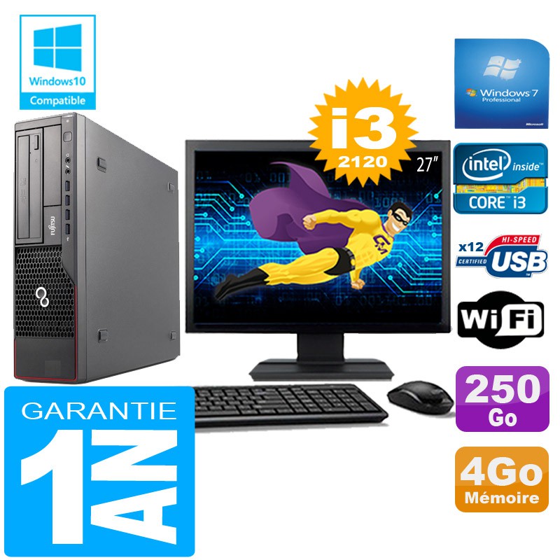PC Fujitsu Esprimo E700 E90+ SFF - Intel Core I3-2120 3,3Ghz - 4Go DDR3 - Disque Dur 250Go - Graveur DVD - Clé WIFI USB - Windows 7 Pro - Pack Clavier + Souris + Ecran 27" ( Marque et modéles selon arrivages) - Garantie = 1 an.