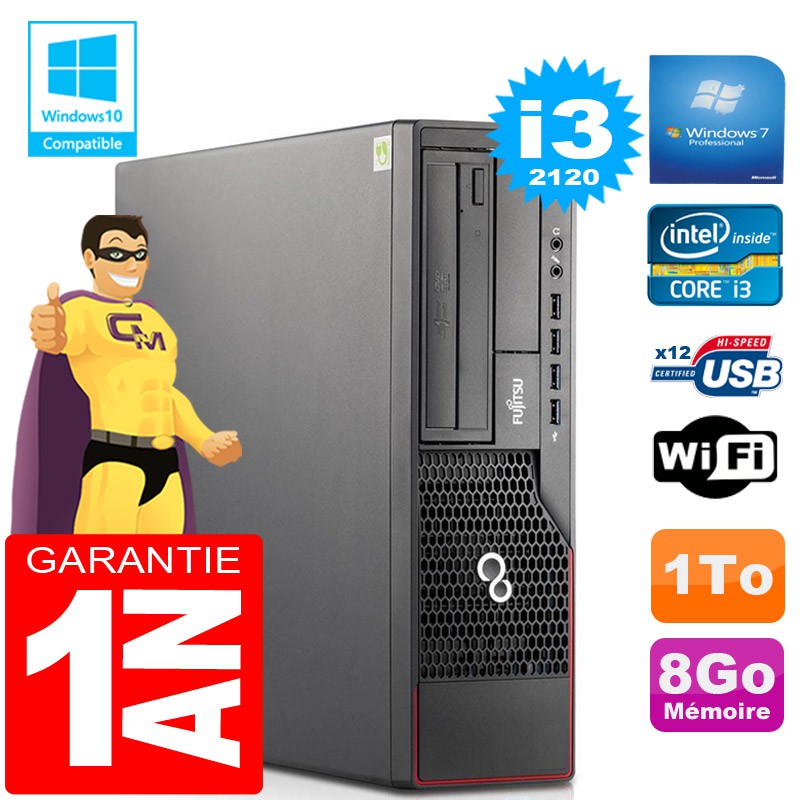 PC Fujitsu Esprimo E700 E90+ SFF - Intel Core I3-2120 3,3Ghz - 8Go DDR3 - Disque Dur 1To - Graveur DVD - Clé WIFI USB - Windows 7 Pro - Garantie = 1 an.