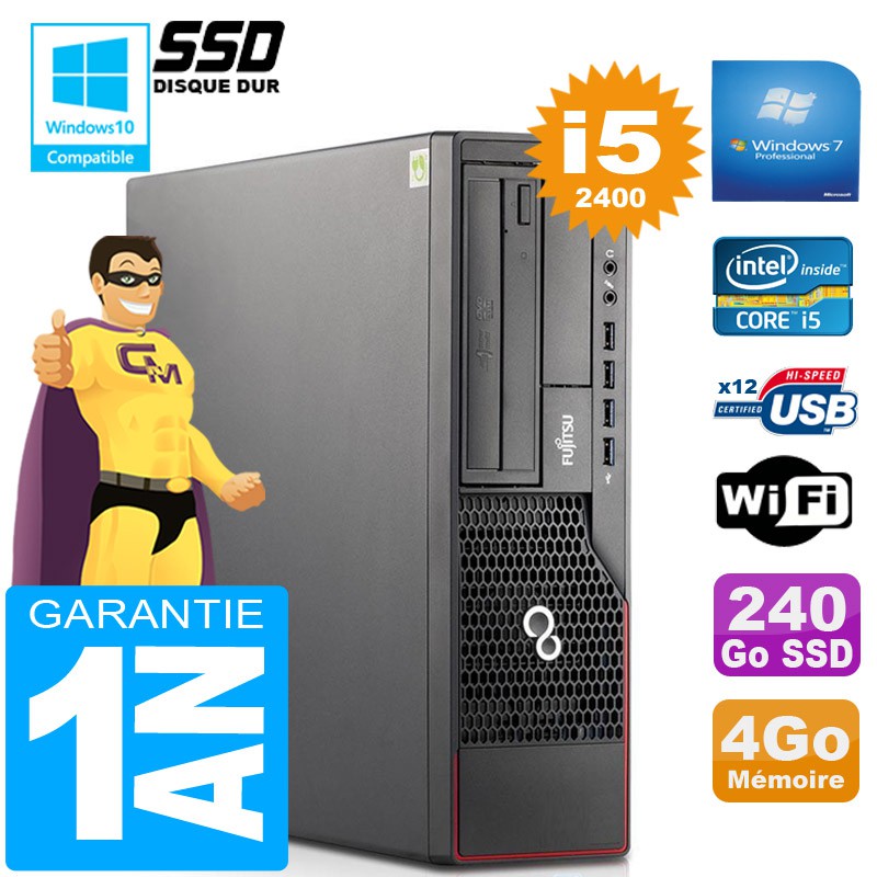 PC Fujitsu Esprimo E700 E90+ SFF - Intel Core I5-2400 3,1Ghz - 4Go DDR3 - Disque Dur 240 Go SSD - Graveur DVD - Clé WIFI USB - Windows 7 Pro - Garantie = 1 an.