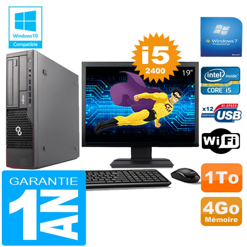PC Fujitsu Esprimo E700 E90+ SFF Core I5-2400 4Go Disque 1 To Wifi W7 Ecran 19"