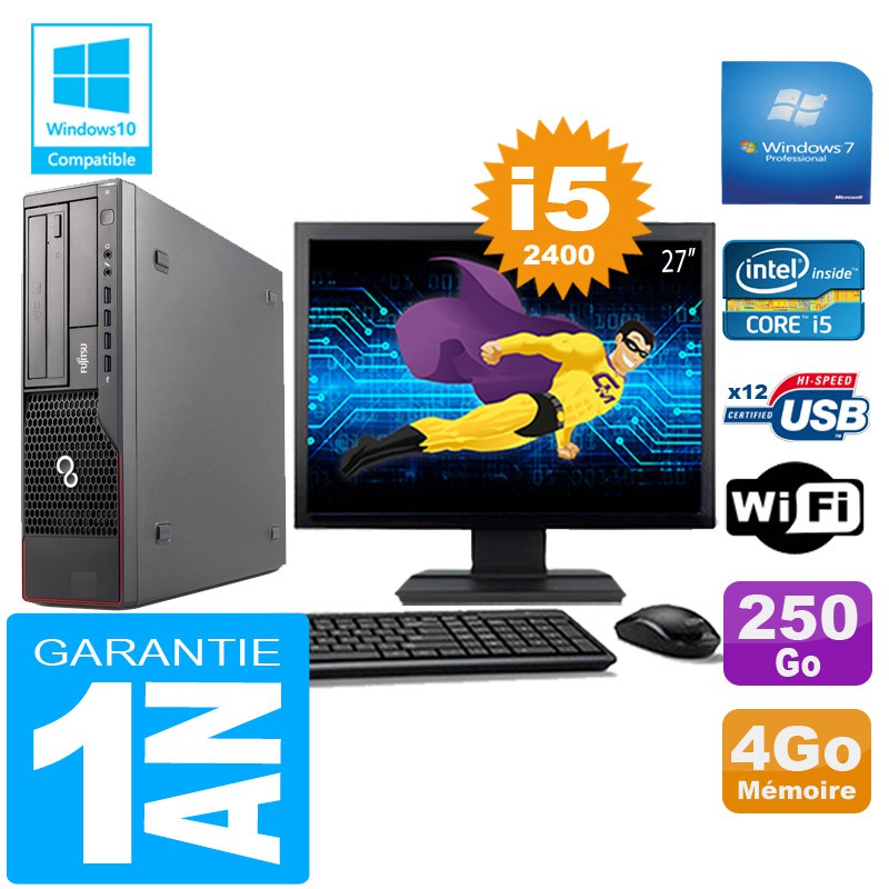 PC Fujitsu Esprimo E700 E90+ SFF Core I5-2400 4Go Disque 250Go Wifi W7 Ecran 27"