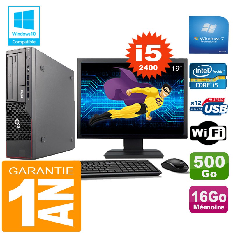 PC Fujitsu Esprimo E700 E90+ SFF I5-2400 16Go Disque 500Go Wifi W7 Ecran 19"