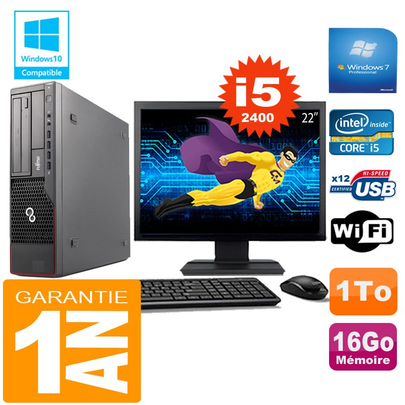 PC Fujitsu Esprimo E700 E90+ SFF Core I5-2400 16Go Disque 1 To Wifi W7 Ecran 22"
