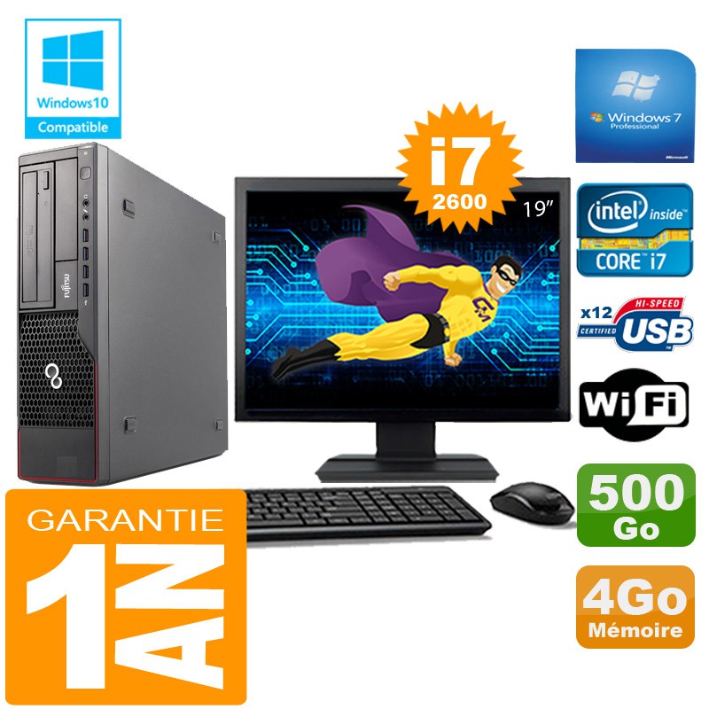 PC Fujitsu Esprimo E700 E90+ SFF - Intel Core I7-2600 3,4Ghz - 4Go DDR3 - Disque Dur 500Go - Graveur DVD - Clé WIFI USB - Windows 7 Pro - Pack Clavier + Souris + Ecran 19" ( Marque et modéles selon arrivages) - Garantie = 1 an.
