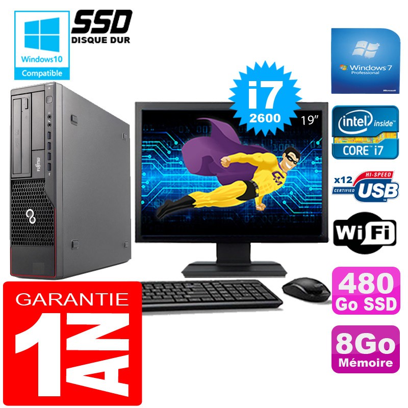 PC Fujitsu Esprimo E700 E90+ SFF I7-2600 8Go Disque 480 Go SSD Wifi W7 Ecran 19"