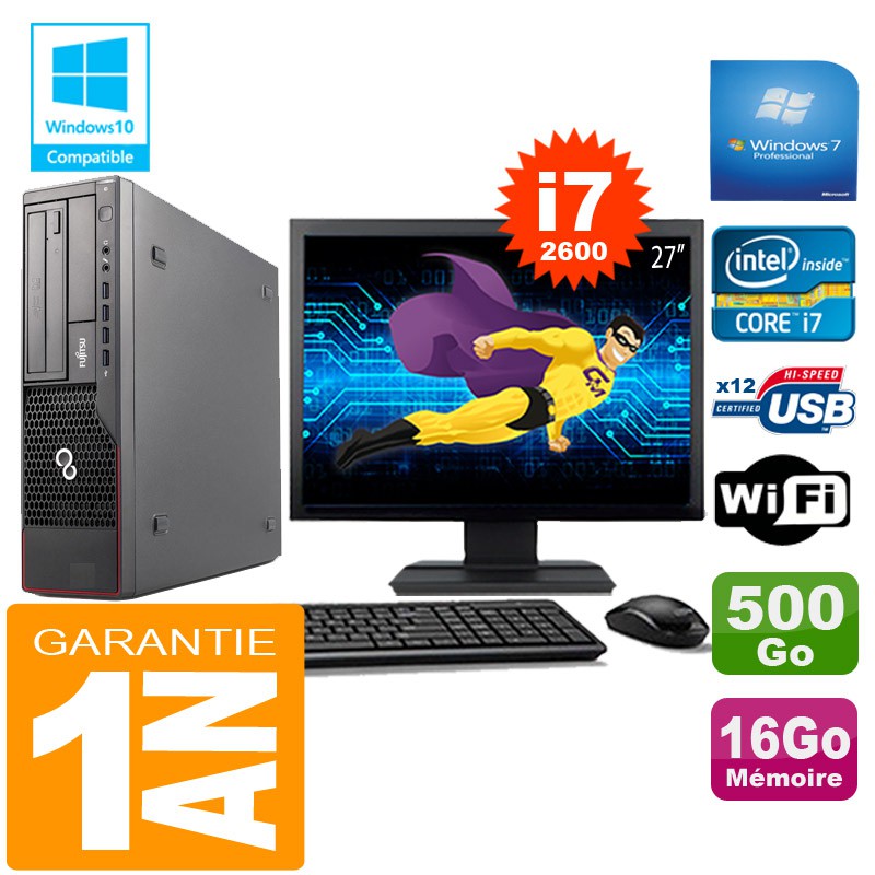 PC Fujitsu Esprimo E700 E90+ SFF - Intel Core I7-2600 3,4Ghz - 16Go DDR3 - Disque Dur 500Go - Graveur DVD - Clé WIFI USB - Windows 7 Pro - Pack Clavier + Souris + Ecran 27" ( Marque et modéles selon arrivages) - Garantie = 1 an.