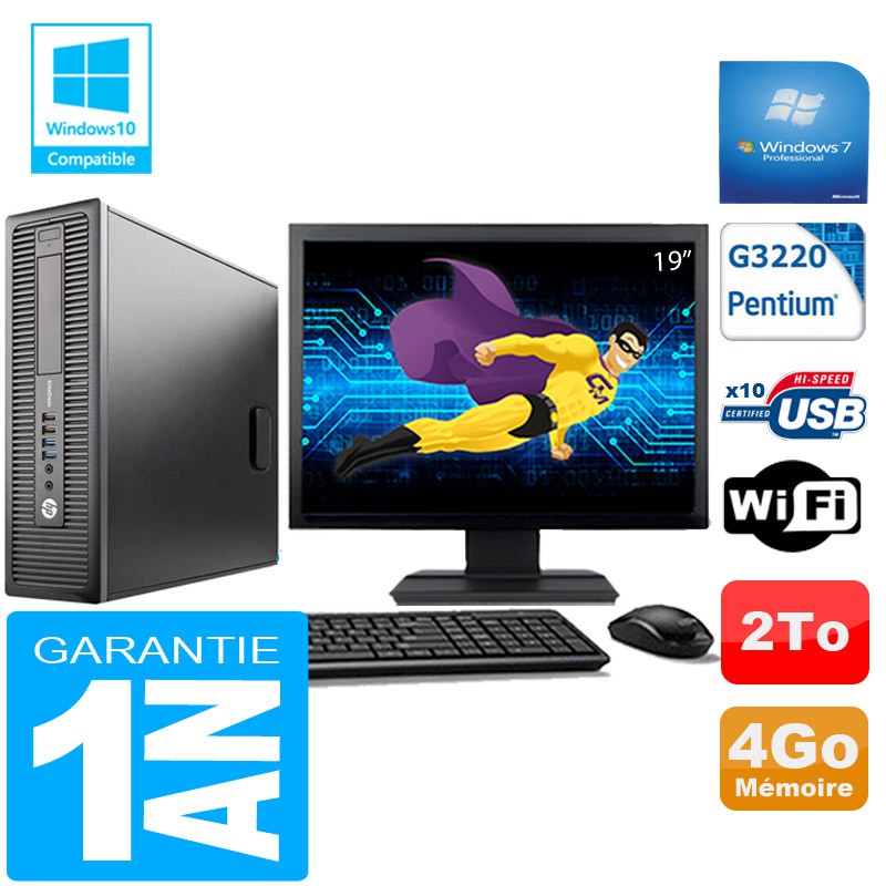 PC HP EliteDesk 800 G1 SFF Intel G3220 4 Go Disque 2 To Wifi W7 Ecran 19"