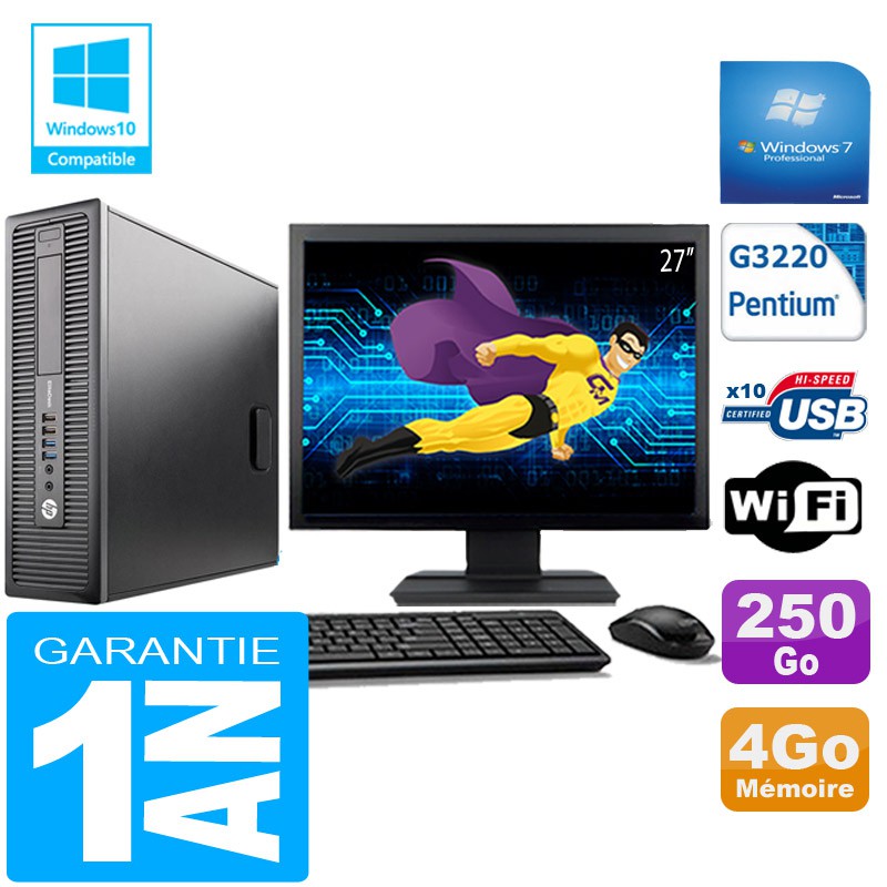 PC HP EliteDesk 800 G1 SFF Intel G3220 4 Go Disque 250 Go Wifi W7 Ecran 27"