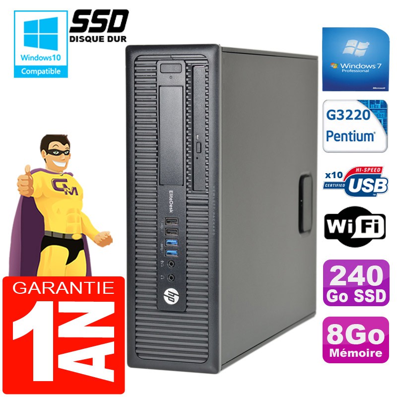 PC HP EliteDesk 800 G1 SFF Intel G3220 8Go Disque 240 Go SSD Graveur DVD Wifi W7