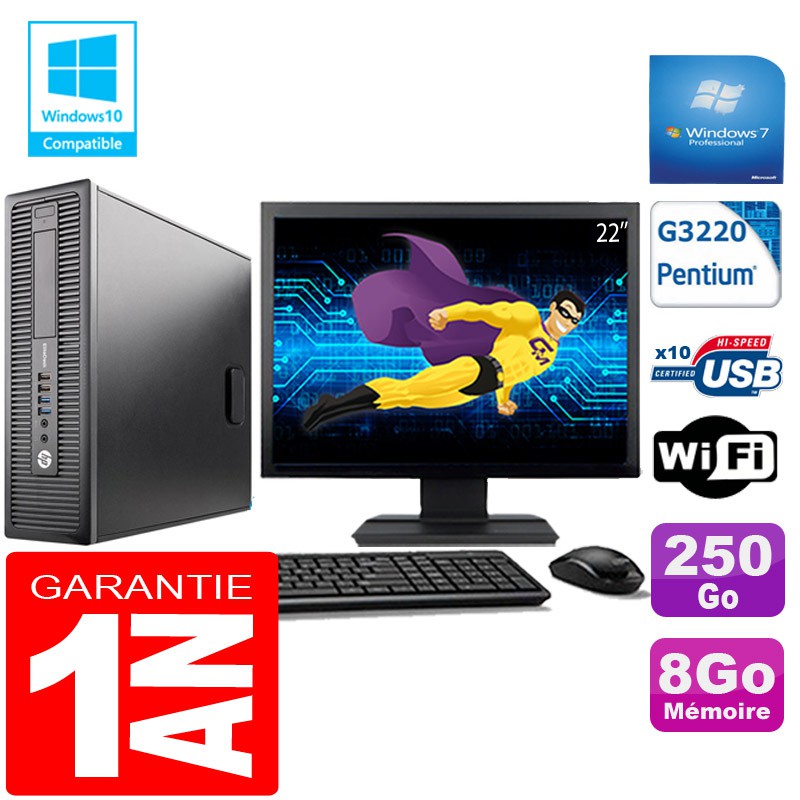 PC HP EliteDesk 800 G1 SFF Intel G3220 8Go Disque 250 Go Wifi W7 Ecran 22"