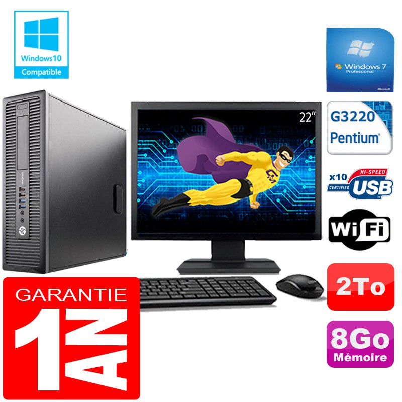 PC HP EliteDesk 800 G1 SFF Intel G3220 8Go Disque 2 To Wifi W7 Ecran 22"