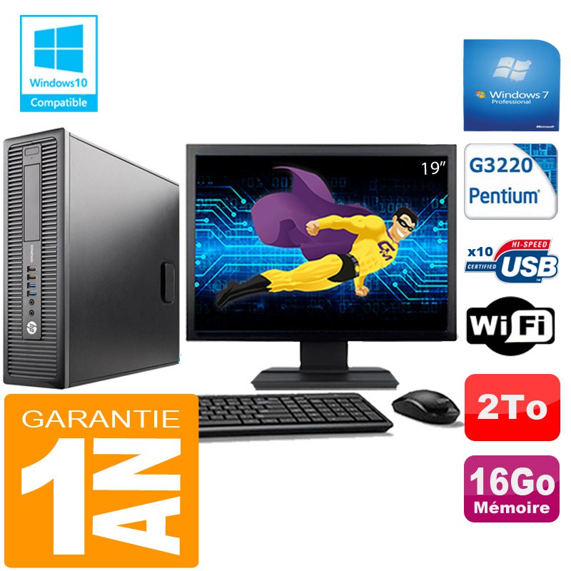 PC HP EliteDesk 800 G1 SFF Intel G3220 16Go Disque 2 To Wifi W7 Ecran 19"