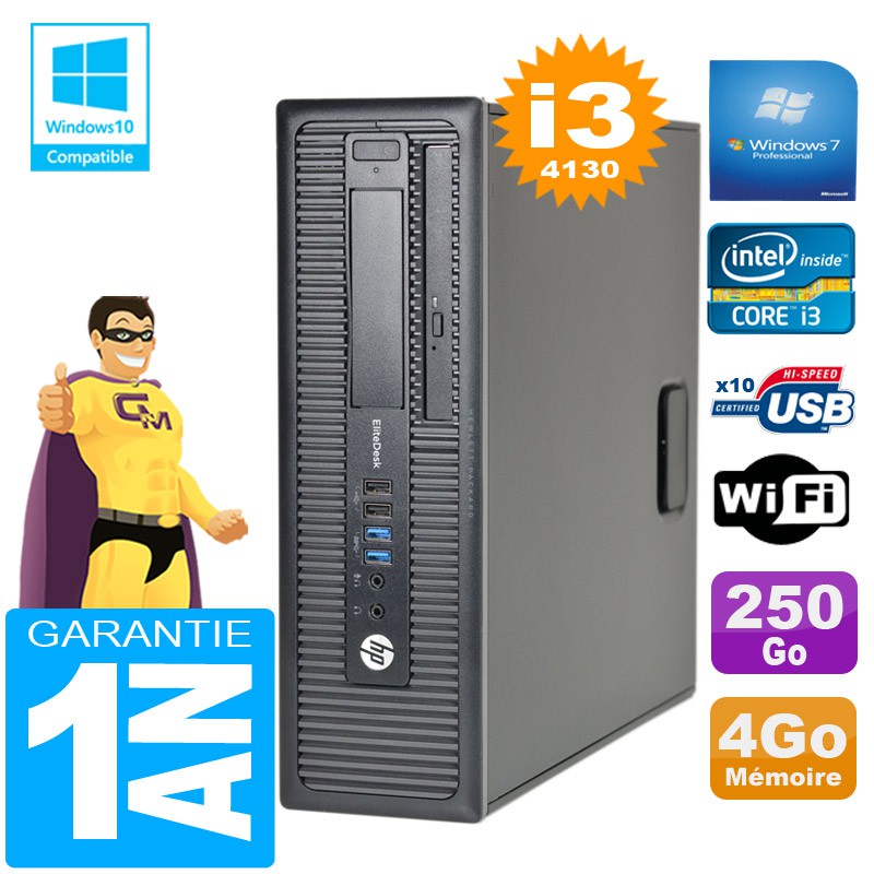 PC HP EliteDesk 800 G1 SFF Core I3-4130 4Go Disque 250 Go Graveur DVD Wifi W7