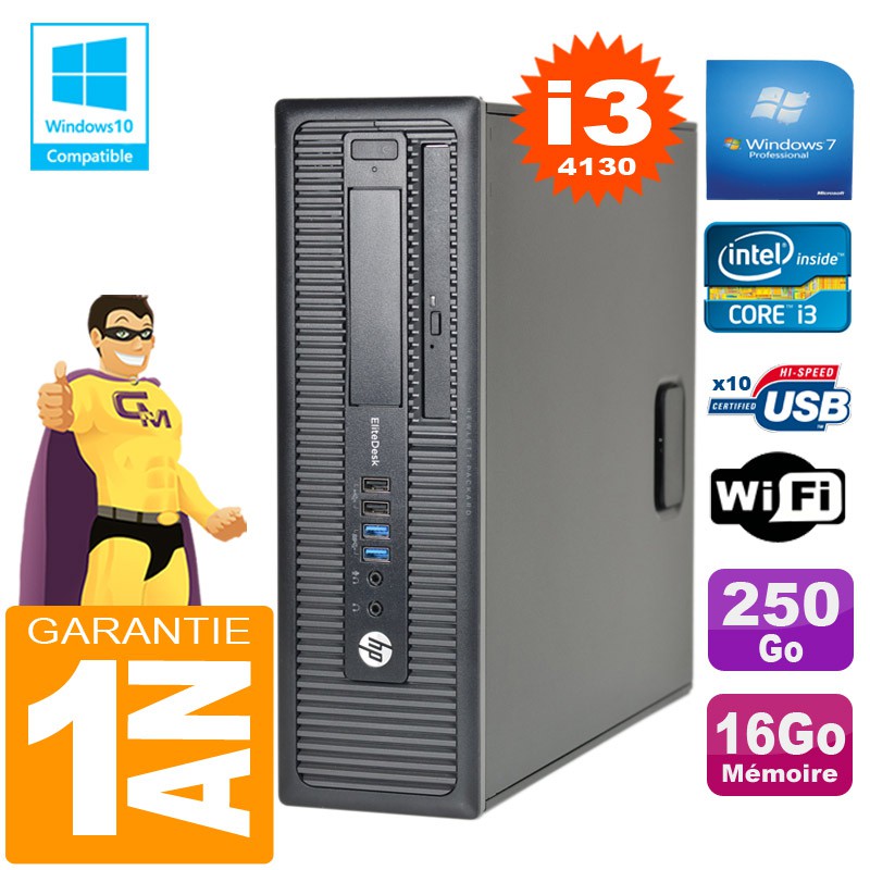 PC HP EliteDesk 800 G1 SFF Core I3-4130 16Go Disque 250Go Graveur DVD Wifi W7